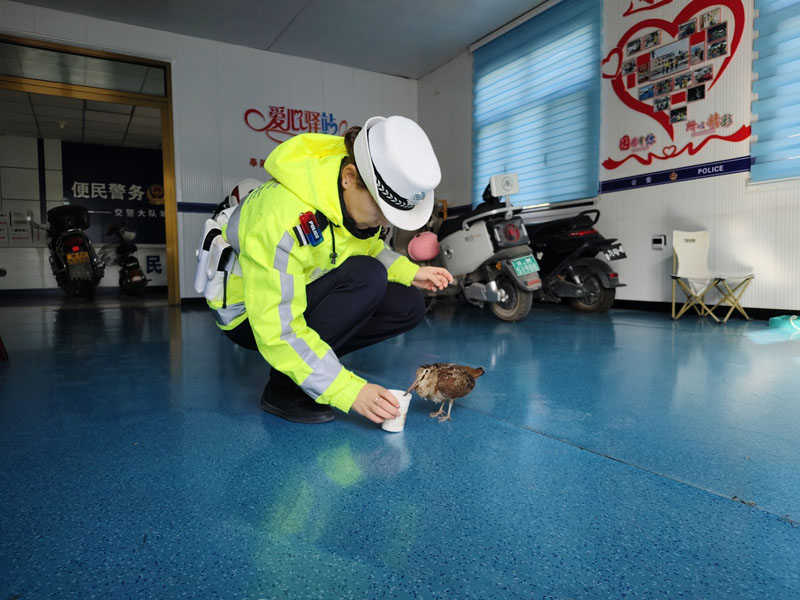 新疆讯(通讯:折树艳、季乔微)10月31日,新疆和硕县公安局交通管理大队城区中队民警辅警在日常巡逻勤务中,成功救助一只国家二级保护野生动物丘鹬。
