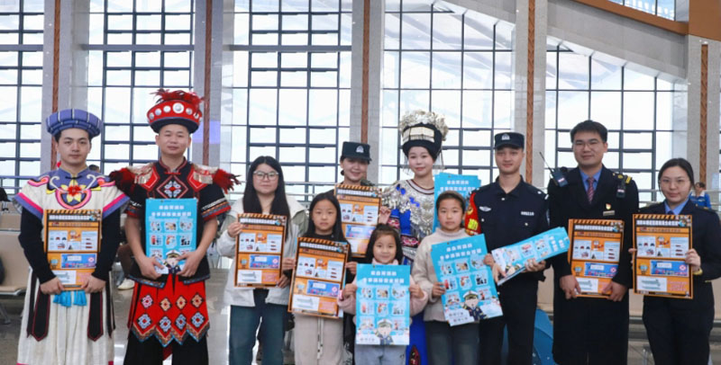 张家界讯(通讯:王蒙 刘亚平)11月9日,在全国第34个“11·9”消防安全日里,怀化铁路公安处张家界西站派出所民警创新宣传形式,身着土家族、白族非遗特色服饰深入张家界西站开展消防安全宣传,为初冬的高铁站增添了一抹别样的民族风情与安全暖意。