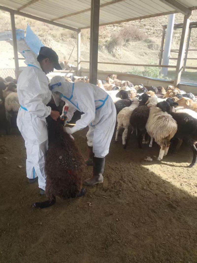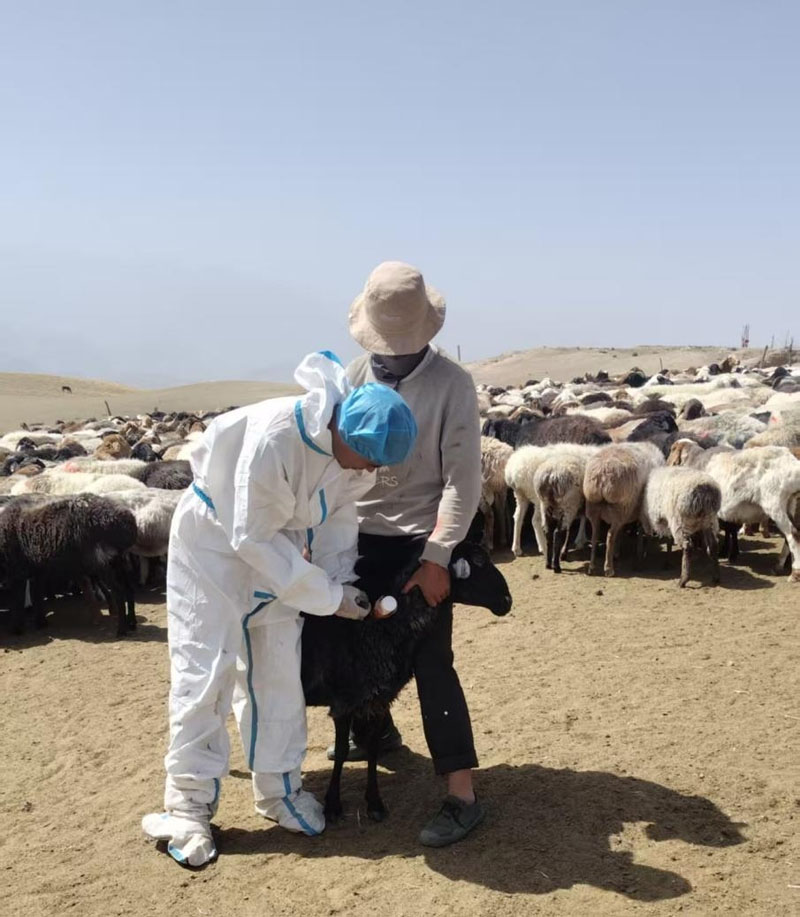 针对冬季口蹄疫、小反刍、布鲁氏菌病高发特点,二连党支部联合牧场农业和林业发展中心早谋划、早部署,在严寒全面降临前完成筹备工作。自10月中旬起,连队抽调3名专业防疫员与多名经验丰富的老牧工,组建流动防疫服务队,采取“上门服务、集中免疫、逐户核查”模式,分多路深入40个放牧点和集中养殖区,重点开展口蹄疫(O型、A型)、布鲁氏菌病强制免疫,同步推进羊痘普查,确保防疫无死角、无遗漏。