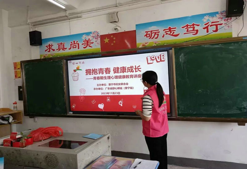 第二场讲座在云落镇云楼小学,由广东省妇联“舒心驿站”(普宁站)讲师陈丽虹老师主讲《拥抱青春,健康成长——青春期生理心理健康教育讲座》,陈老师从“老鹰”抓“小鸡”的小游戏开始,引导同学们学会躲避危险,保护自我。接着,陈老师向同学们讲述了男生女生青春期的生理发育特点,教育同学们正确认识和处理出现的身体变化。讲座上,陈老师重点向同们介绍了青春期心理的发展特点,他从思维独立、自我意识增强、情感情绪易变和性意识萌发四个角度出发,引导向同学们理性看待青春期的各种变化。讲座中,陈老师分享了形象生动的视频,学生们积极思考,勇于发言,在活泼欢快的气氛中,他们不仅学习了青春期生理健康知识,也懂得了在成长中如何处理由于生理心理变化带来的烦恼,对自身充满信心,也获得了满满的正能量!