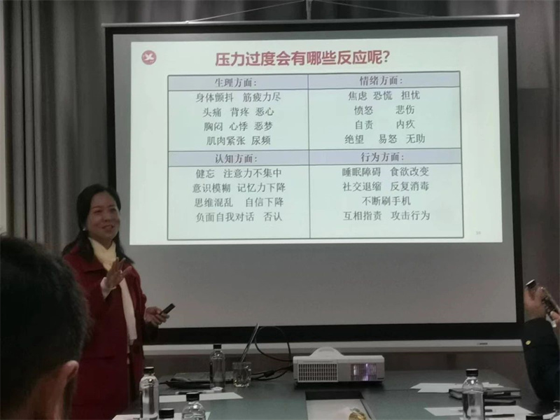本次讲座主题是工作压力与家庭幸福感的平衡。讲座中,滕慧芳老师结合城管队伍的职业特点,运用通俗易懂的语言和自身丰富的理论知识、工作经验,生动讲授了情绪管理、压力缓解、自我调节的方法技巧。通过多角度多层次引领、帮助干部职工调整了情绪,舒缓了工作压力,解决了他们内心的矛盾和困扰,提升了干部职工自我认知水平。