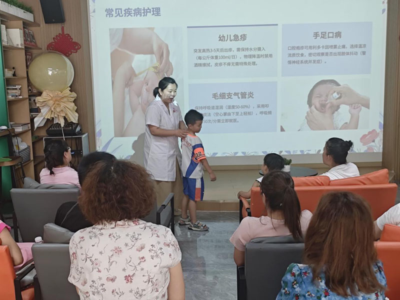 活动现场,市妇幼保健院儿保科医生结合婴幼儿生长发育规律,用通俗易懂的语言讲解了不同月龄段宝宝的喂养要点、睡眠护理、常见疾病预防等实用知识。从“如何判断宝宝营养是否均衡”到“夏季婴幼儿热疹护理小技巧”,医生通过案例分析、现场演示等方式,将专业知识转化为家长们能听懂、用得上的“育儿指南”,并耐心解答了居民关于辅食添加、疫苗接种等方面的疑问,互动氛围热烈。