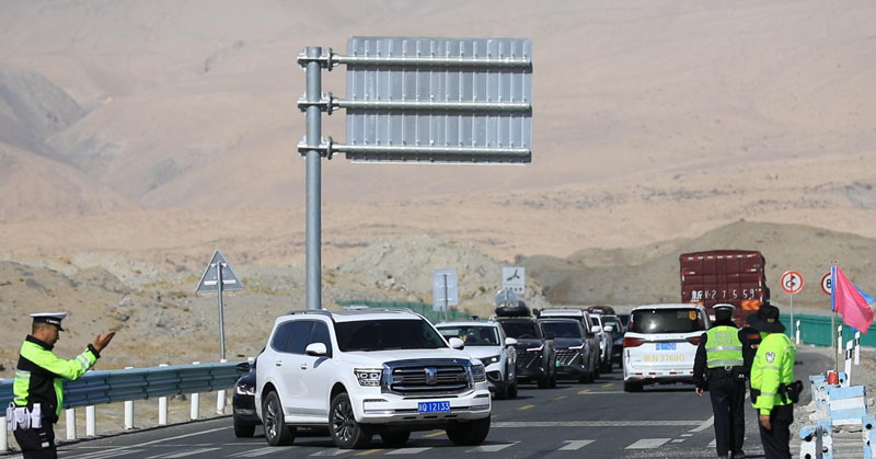 国庆首日,海拔3600多米的314国道路段,每隔一路段就能看到闪烁的警灯。阿克陶县公安局坚持“警力跟着游客走”在重点时段实行"一路段一警力"模式,在170多公里的险峻路段筑起流动安全网,用国庆值守确保这条进出帕米尔高原的"旅游路"安全畅通。