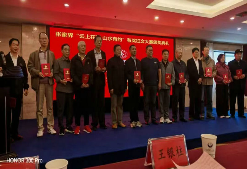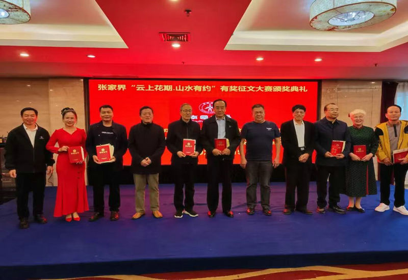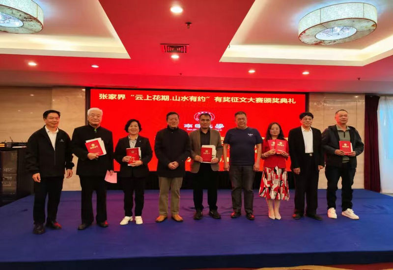 本报讯(通讯员 晓夫 建华) 10月19日上午9点,由湖南省诗词协会南国文学社、张家界诗词楹联协会等单位主办的张家界“云上花期,山水有约”有奖征文大赛颁奖典礼在张家界国际酒店举行。张家界市文联原主席赵辉廷、市文联四级调研杨次洪、南国文学社顾问张家界市武陵源区文联原主席朱明先、张家界市诗词楹联协会主席龙章海、张家界市诗词楹联协会常务副主席王章钧、湖南省诗词协会南国文学社社长卢小夫,副社长冯永谦、袁铁山、王银柱、《作家文学》杂志社常务副社长刘畅,以及获奖作者徐富雄、雷大毕、曹承敏等40余人参加了颁奖典礼。活动由南国文学社副主席袁铁山主持。
