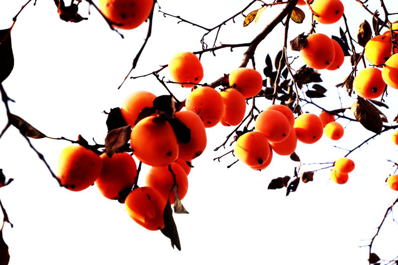 “红柿垂露满枝头,香甜宛如初恋愁。”