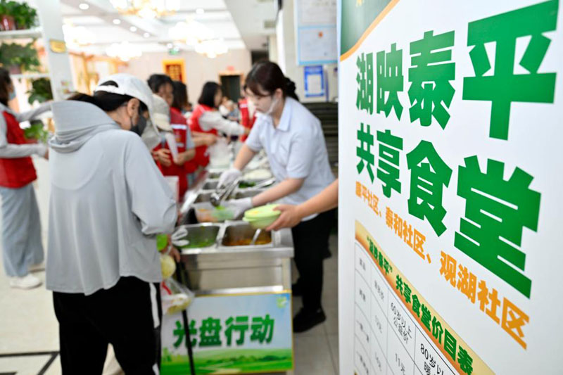 6月26日,居民在宁夏银川市兴庆区“湖映泰平”共享社区食堂就餐。 王鹏 摄