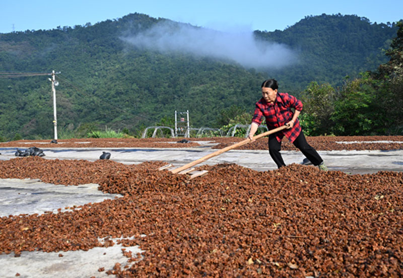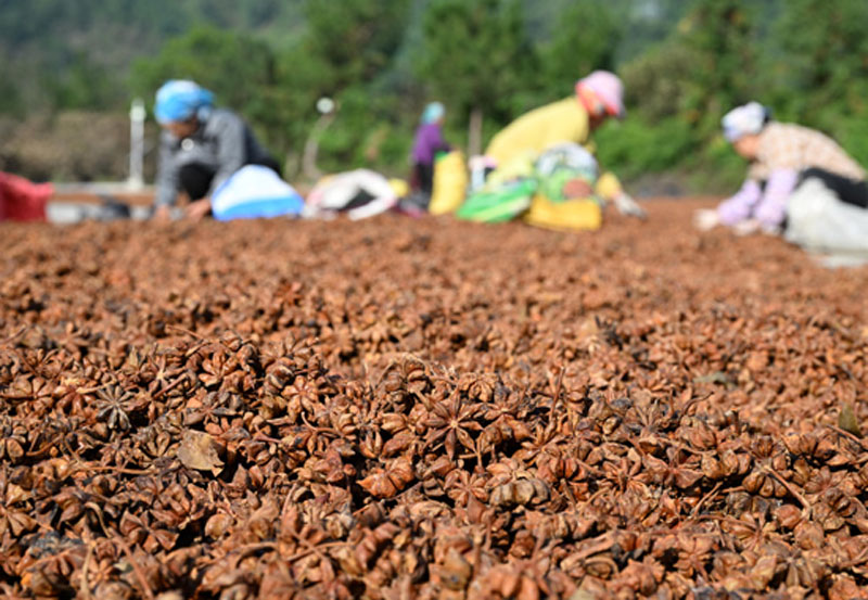 在利周瑶族乡平布村,种植大户龚水宝正和家人将刚采收的八角进行摊晒。“今年天气好,八角结得又多又饱满,虽然价格与往年基本持平,但产量上来了,收入还是有保障。”他一边翻晒着色泽棕红的八角一边说,“我家这110亩八角,估计能收入13万元,一年的辛苦没有白费!”朴实的语言里透着满足。