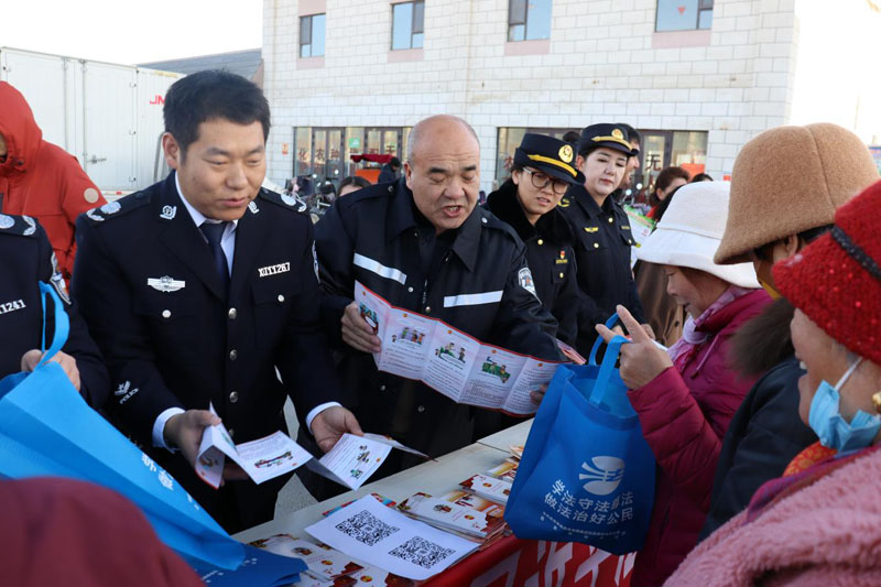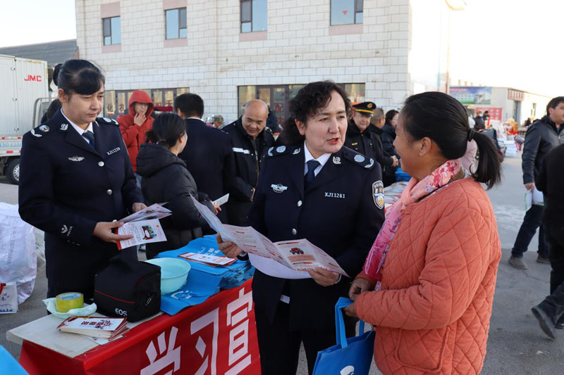 清晨的且末县农贸市场人潮涌动,普法宣传队穿梭于商户摊位与各族群众之间,通过汉维双语讲解、以案释法等方式,生动阐释宪法与日常生活的紧密联系。市集入口的集中宣传点前,普法志愿者围绕群众关心的权益保护、乡村振兴、民族团结等话题,结合《宪法》《民法典》等法律法规开展互动答疑,发放普法折页、法治文创礼品千余份,让抽象的法条转化为百姓“听得懂、用得上”的生活道理。