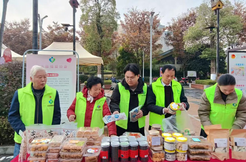 天刚蒙蒙亮,李瑞生、龙芊、张吉群、甘挂珍等志愿者就早早到位布置摊位。自家手工的健康小吃、本地鲜摘的特色农产品整齐码放,琳琅满目的商品间,“义卖所得全捐公益基金”的牌子格外打眼。“快来看看哟!都是咱亲手做的健康零食,干净又好吃!”志愿者们热情吆喝着,不一会儿摊位前就围满了闻讯而来的老人和孩子。