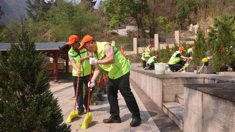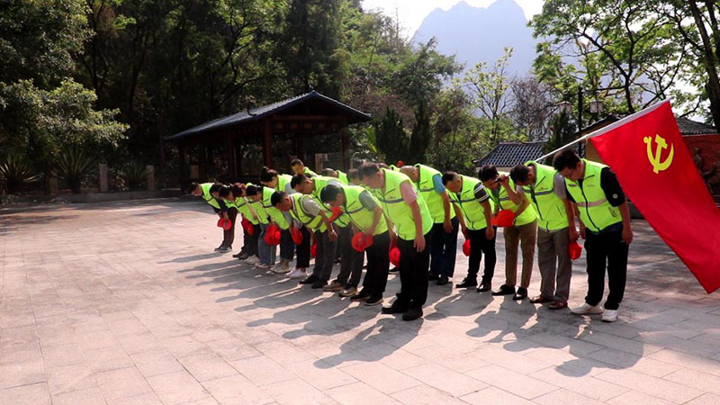 烈士陵园松柏环绕,烈士墓群默然矗立。祭扫活动中,全体党员干部职工怀着敬仰的心情,细致地擦拭墓碑,认真地清扫陵园,清理烈士墓及周围的杂草、灌木、垃圾等,保持好烈士陵园庄严、肃穆环境氛围。清扫结束后,全体党员干部职工整齐列队向烈士墓三鞠躬,并肃立默哀,现场气氛庄严肃穆。随后,全体党员重温入党誓词,以此表达对革命先烈的哀思,深切缅怀为国捐躯的革命英烈们。最后,该中心主任致悼词,深切悼念为新中国革命事业前赴后继、英勇献身的先烈,缅怀丰功伟绩,继承革命遗志,传承红色基因,弘扬革命精神,立足“养好公路,保障畅通,服务社会”主责主业,以实际行动践行新时代公路人的责任和担当,全力推进“壮美公路”建设,谱写壮美广西凌云公路发展新篇章。