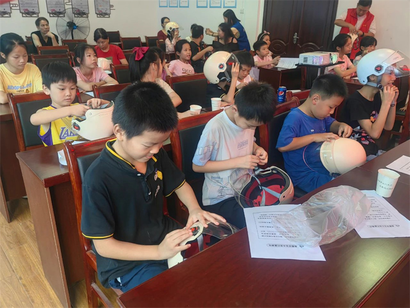 萍乡市讯(通讯:杨子月)开学季即将来临,为进一步增强学生的交通安全意识和安全防护能力,8月24日,安源区青山镇新建社区、七一社区联合青山交警、青山社工服务站开展“一盔一带迎开学”交通安全宣讲公益活动,孩子们齐聚一堂,接受交通安全知识的洗礼。