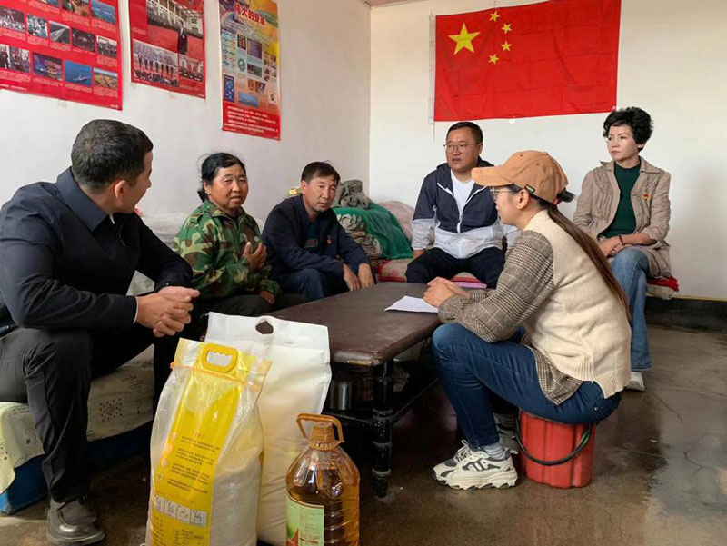 和硕讯(通讯:斯琴)为学习宣传贯彻党的二十大精神,营造良好的节日氛围,近日,和硕县塔哈其镇挂职副书记、小康社区包联领导塔叶·阿迪克与“访惠聚”工作队、社区“两委”工作人员一同走访慰问了老党员和部分困难群众11户,为他们送去党的关怀和节日问候。