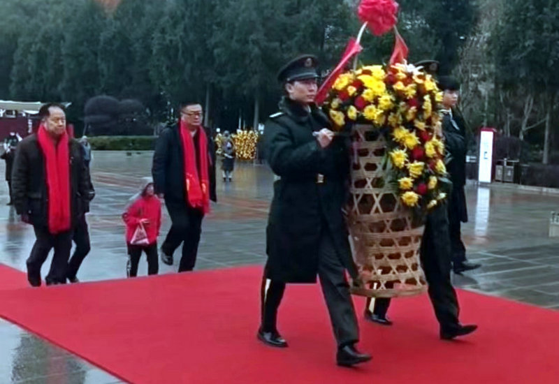 上午9点29分,在韶山毛泽东广场,伴随着《献花曲》深情的旋律,礼兵托起花篮,正步缓缓走向毛泽东同志铜像,将花篮摆放在铜像基座前。马新存、张郑军缓步来到毛泽东同志铜像前,静静肃立。马新存、张郑军缓步上前整理花篮缎带,并向毛泽东同志铜像深深三鞠躬。随后,马新存,张郑军从左往右绕行铜像一周,深情瞻仰铜像,表达对毛主席的崇高敬意和无限追思。