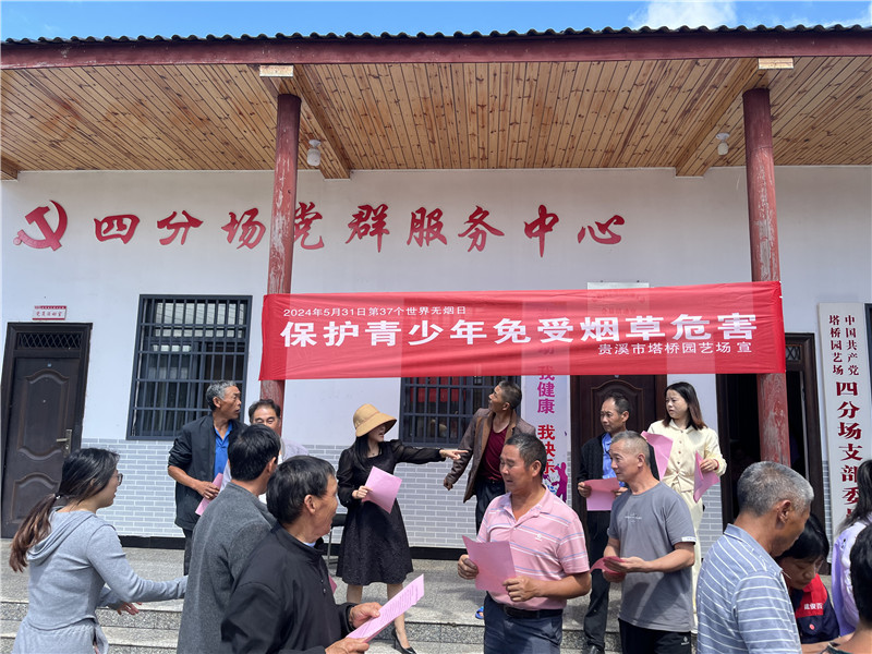 江西贵溪讯(通讯:张美琪)为深入开展控烟宣传教育,预防烟草危害,积极构建青少年控烟防烟防护网,近日,江西省贵溪市塔桥园艺场开展了“保护青少年免受烟草危害”主题宣传活动。