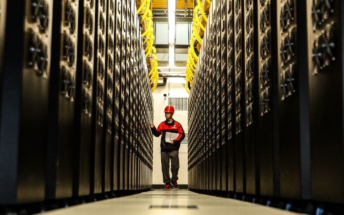 工作人员在贵安超算中心数据机房内工作(2024年8月29日摄)。 刘续 摄
