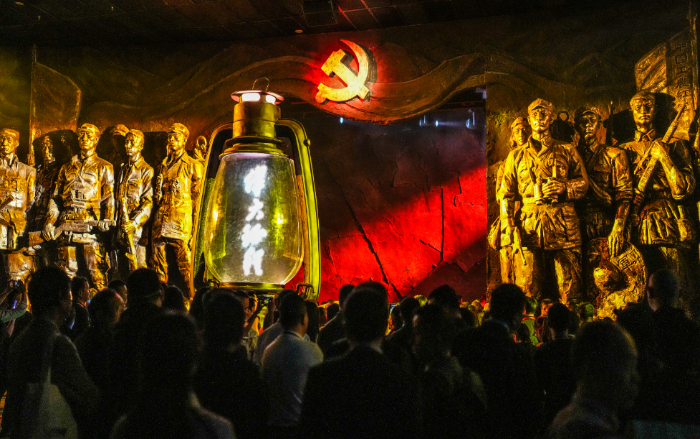观众跟着马灯、红旗踏上“伟大征程”,沉浸式感受“遵义会议”“四渡赤水”等革命历史事件,用双脚丈量“爬雪山过草地”等场景,亲手托起“胜利会师的红旗”……