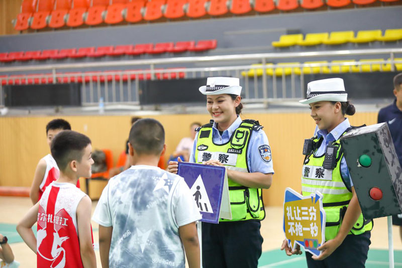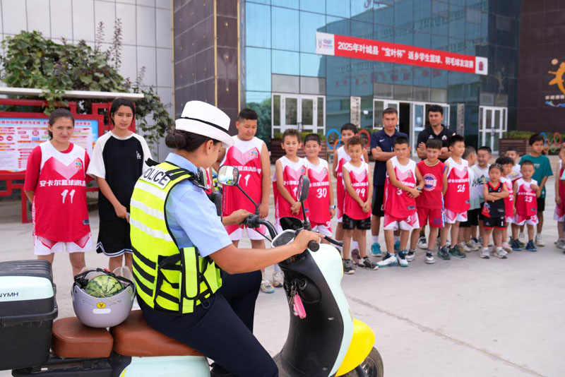 叶城讯(通讯:程超、吐尔逊·阿布来提)为进一步提升青少年法治意识和自我保护能力,8月13日,新疆喀什地区叶城县公安局组织民警走进体育馆,为正在训练的小球员们带来了一堂别开生面的法治宣传教育课。将禁毒、交通安全与反诈知识融入场馆的欢声笑语中,让法治教育以更生动的形式走进青少年生活。