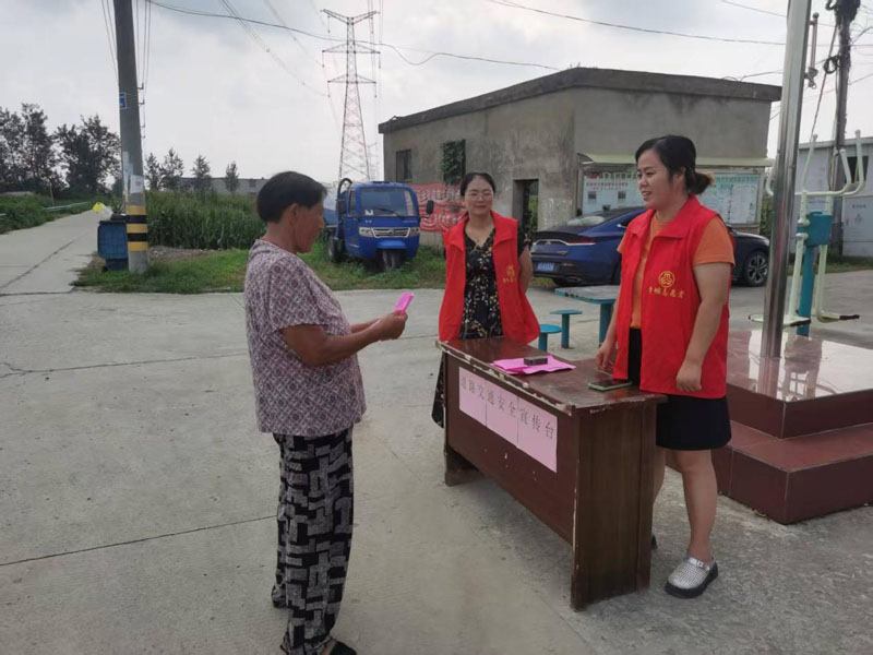 同时为了更好的保障学生上下学期间的交通安全,志愿者们在村口及上下学途径的路段设置宣传台,进行道路安全宣讲,提醒接送学生的家长及周边群众,骑行电动自行车时,正确佩戴安全头盔,注意车速,严格遵守交通规则,并发放道路安全宣传资料。