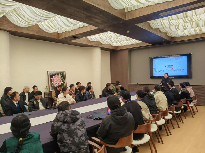 项目于9月17日举行开班仪式,明确了培训目标与纪律。整个培训体系科学严谨,内容丰富多元,主要围绕理论奠基与文化深化: 课程包括《非遗再造 民艺再生》(由省级非遗传承人史生萍讲授)、《文创品牌设计》(由艺术学院郭辉副教授讲授)等,引导学员深入理解热贡文化内核与当代价值。技能赋能与数字化应用: 设置《计算机软件与小视频制作》(由纪煦讲师讲授)等课程,提升学员运用数字化工具进行设计创作和新媒体传播的能力。市场导向与成果转化: 特邀青海省营销策划行业协会主席吕海云、青海省博物馆副馆长元旦尖措、知识产权专家赵玉娟等,讲授《非遗文创-策划的力量》、《文创产品的开发与推广》、《非遗文创知识产权保护》等课程,为学员构建从产品设计到市场落地、权益保护的全链条知识体系。