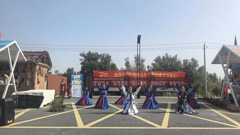 新疆和硕讯(通讯:谭雪梅)金秋十月,丹桂飘香。为热烈庆祝中华人民共和国成立76周年,深情礼赞新疆维吾尔自治区成立70年来的辉煌成就,10月1日,和硕县新塔热乡以三棵树驿站为舞台,精心策划开展了“喜迎国庆·驿站晒秋·趣味研学”欢乐活动。此次活动汇聚新塔热乡各村与二十四团二连干部群众,通过丰富多彩的文化展演与别出心裁的民俗展示,生动诠释了“中华民族一家亲,同心共筑中国梦”的时代强音。