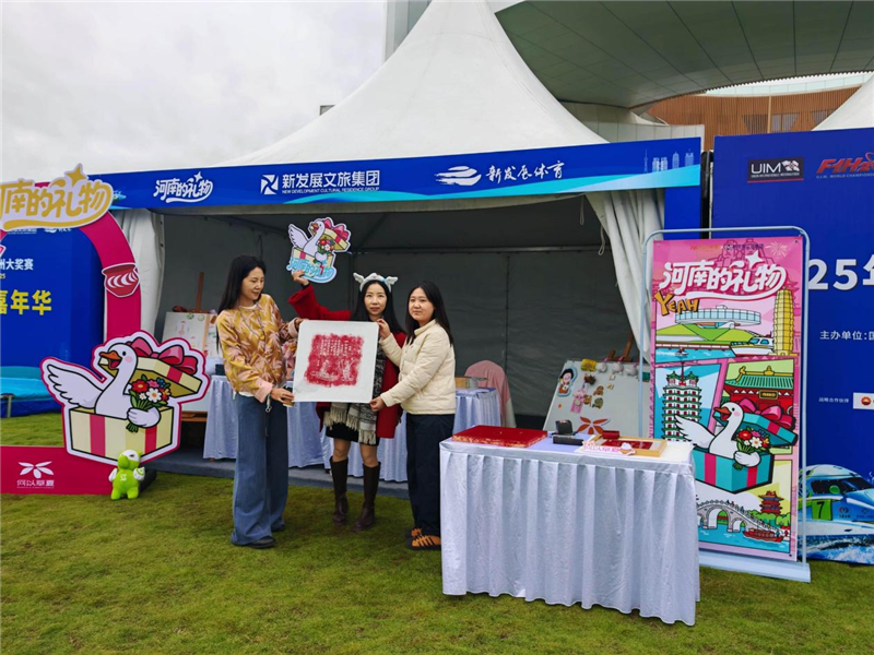 不仅文化交流体验活动“可观、可感、可沉浸”,琳琅满目的文创产品还能让你“装进口袋”。为了展示河南文化,推动文旅文创与赛事相融合,由主办方在场边设立的“河南礼物”文创展台吸引了国内外参赛嘉宾与观众前来围观。