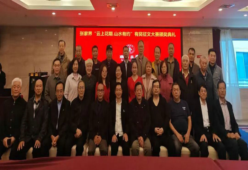 本报讯(通讯员 晓夫 建华) 10月19日上午9点,由湖南省诗词协会南国文学社、张家界诗词楹联协会等单位主办的张家界“云上花期,山水有约”有奖征文大赛颁奖典礼在张家界国际酒店举行。张家界市文联原主席赵辉廷、市文联四级调研杨次洪、南国文学社顾问张家界市武陵源区文联原主席朱明先、张家界市诗词楹联协会主席龙章海、张家界市诗词楹联协会常务副主席王章钧、湖南省诗词协会南国文学社社长卢小夫,副社长冯永谦、袁铁山、王银柱、《作家文学》杂志社常务副社长刘畅,以及获奖作者徐富雄、雷大毕、曹承敏等40余人参加了颁奖典礼。活动由南国文学社副主席袁铁山主持。